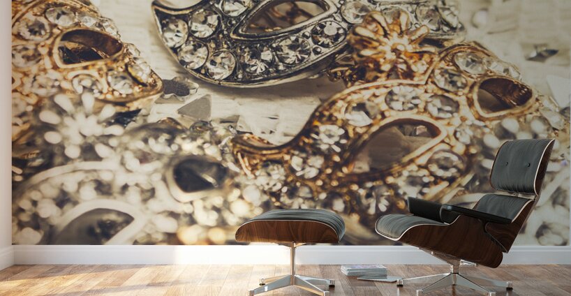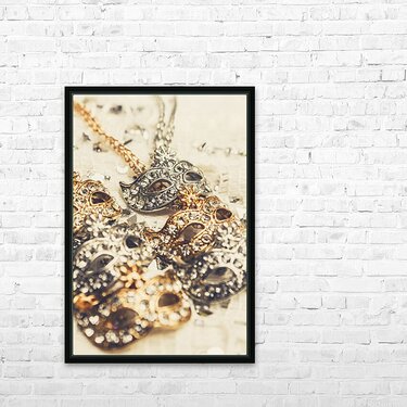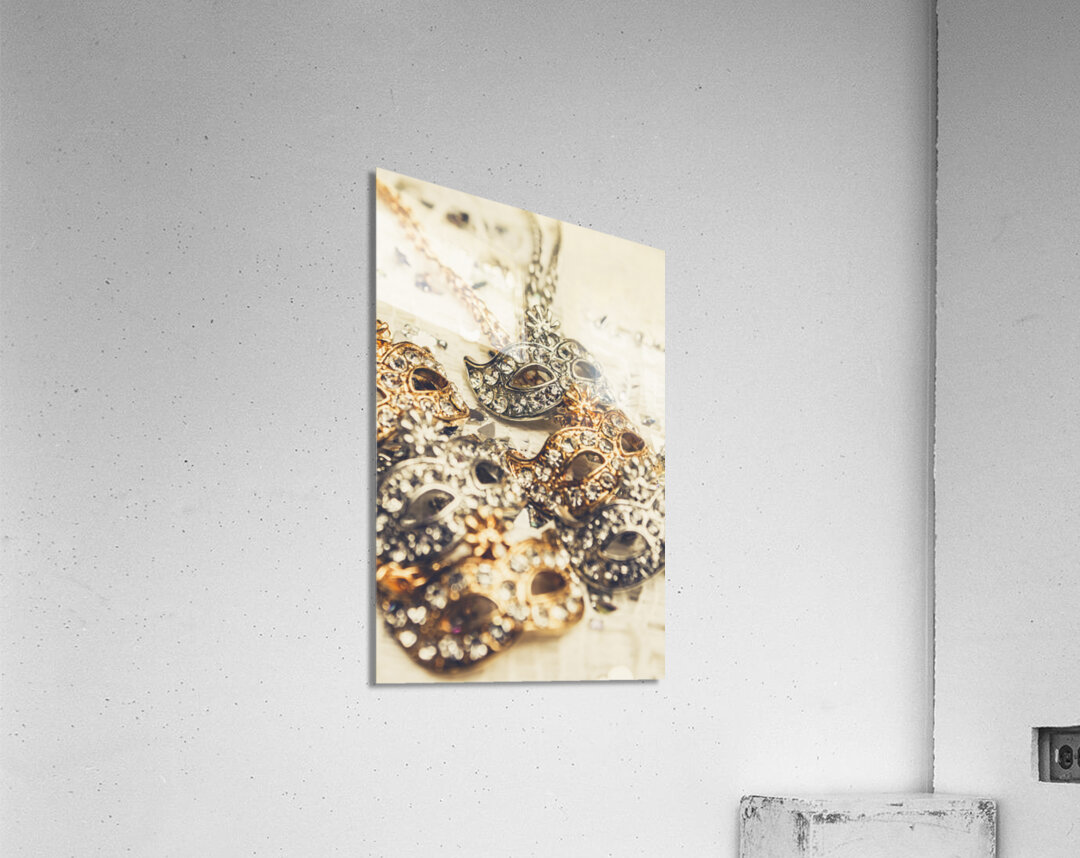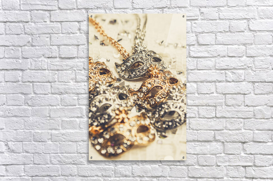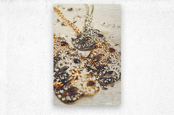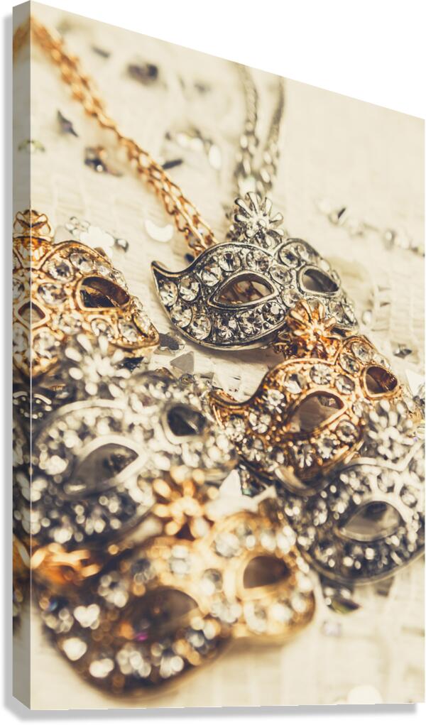 Jewelry still on a gorgeous collection of glamour mask necklaces embedded with crystal rhinestones. Fancy dress timepieces