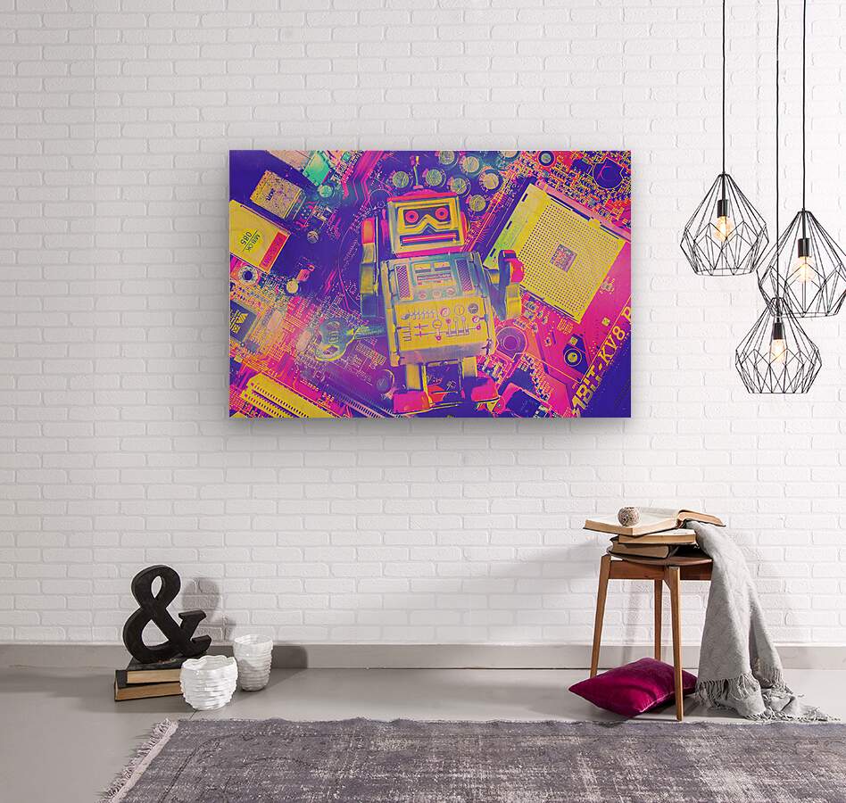 A retro reboot on a bygone tin toy robot reanimating on electrical circuits