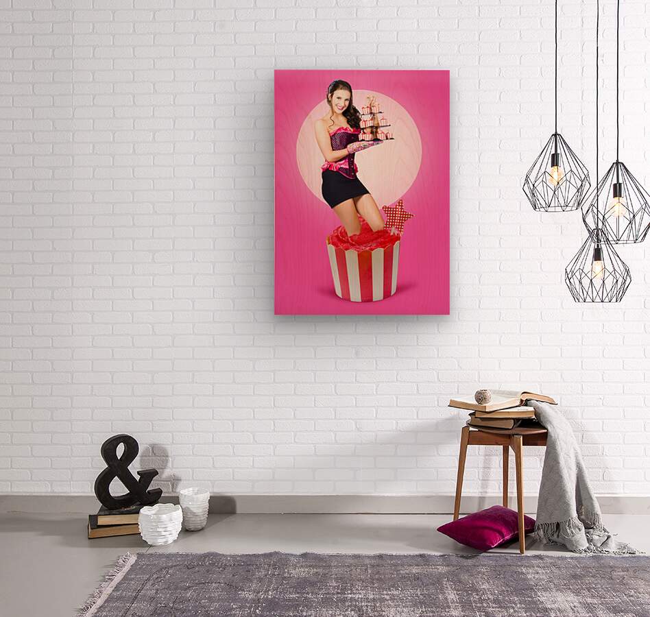 Get this artwork "Pin-up girl popping out of large birthday cake" in a framed print.