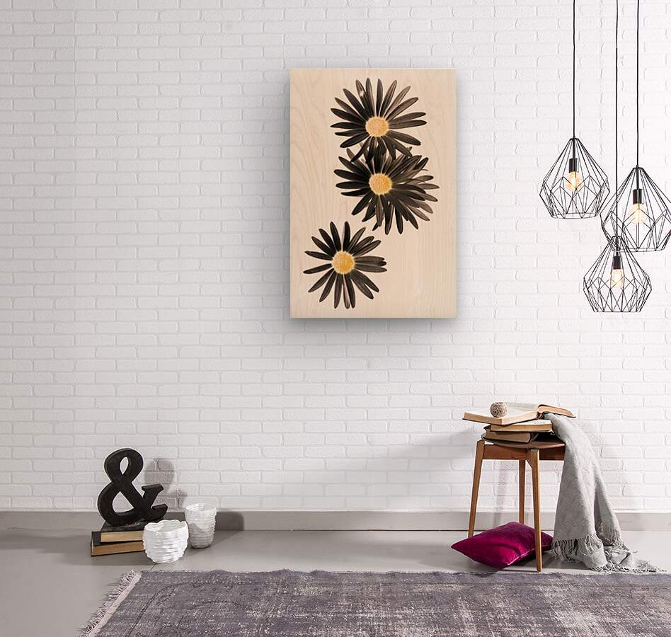 Floral artwork of daisies inverted in clean modern fine art. Seisiad