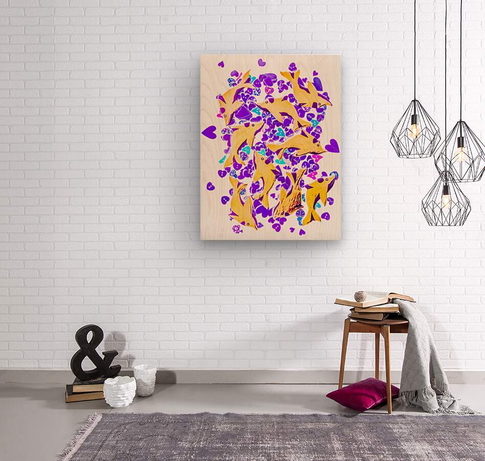 Oceanic fine art on a display of pop art dolphins and abstract heart patterns. Reef romance