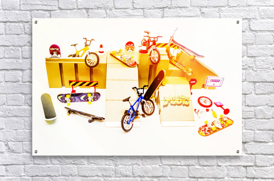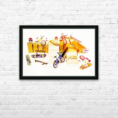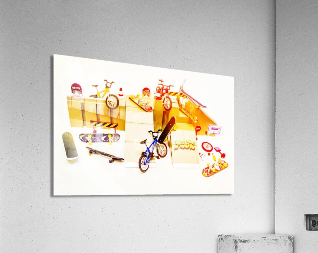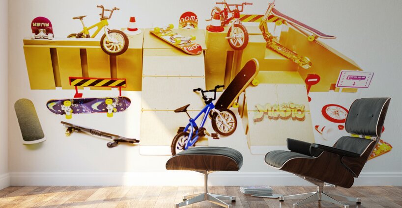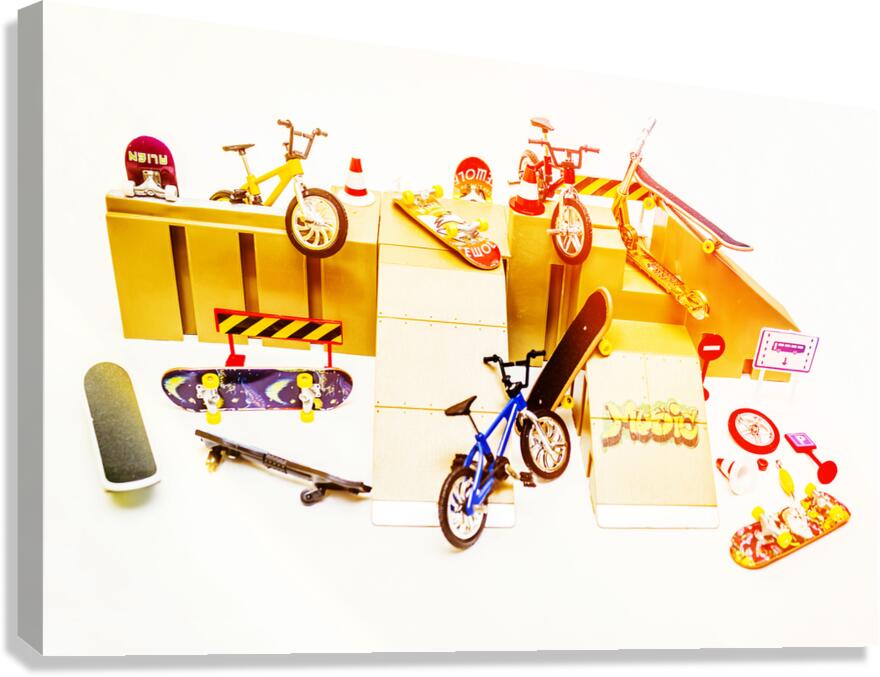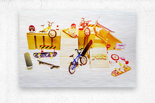 Retro fine art on a play out of a skateboards street signs biking and skate park activities