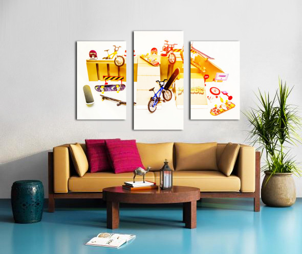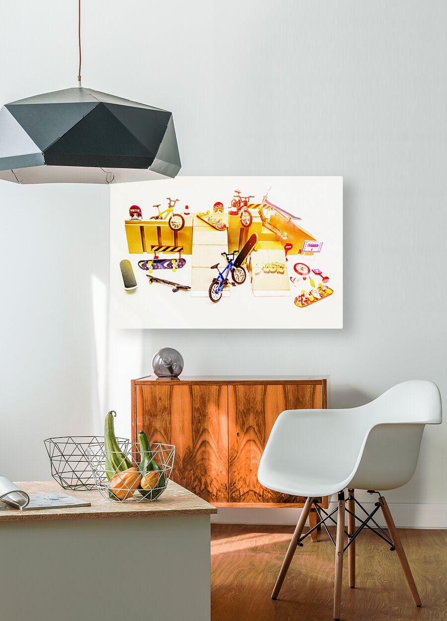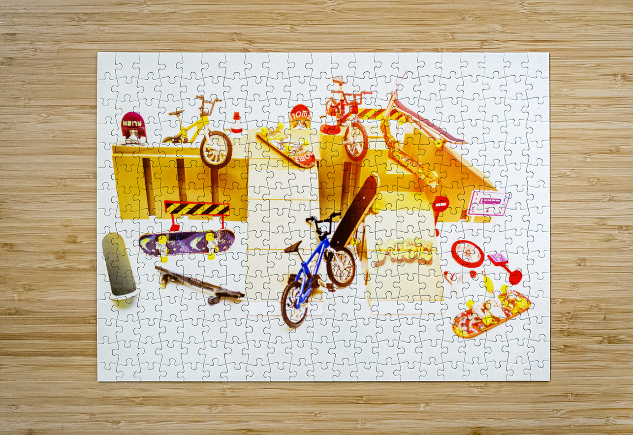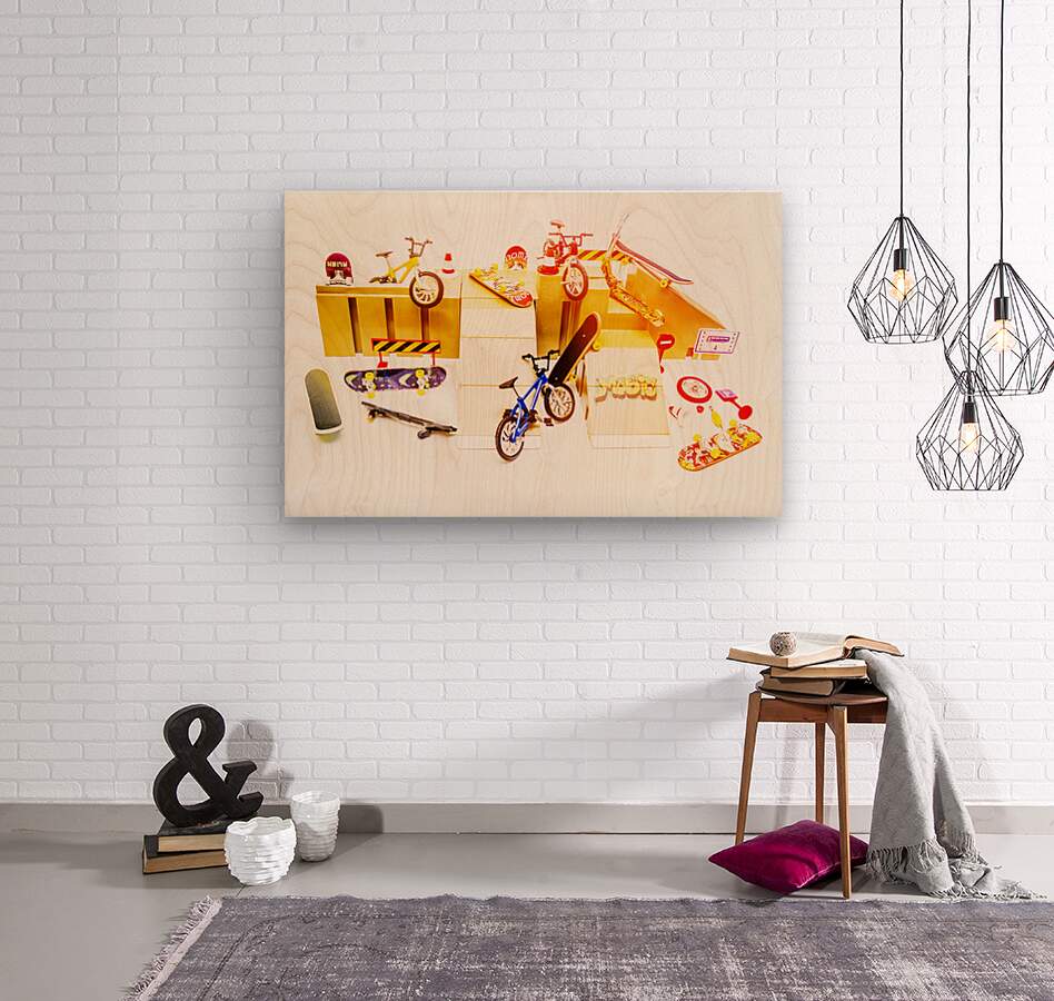 Retro fine art on a play out of a skateboards street signs biking and skate park activities