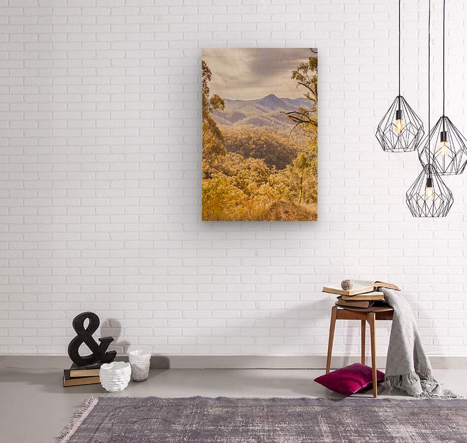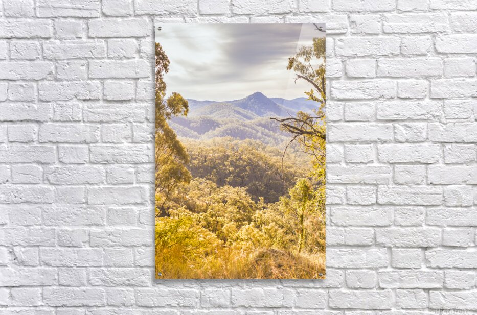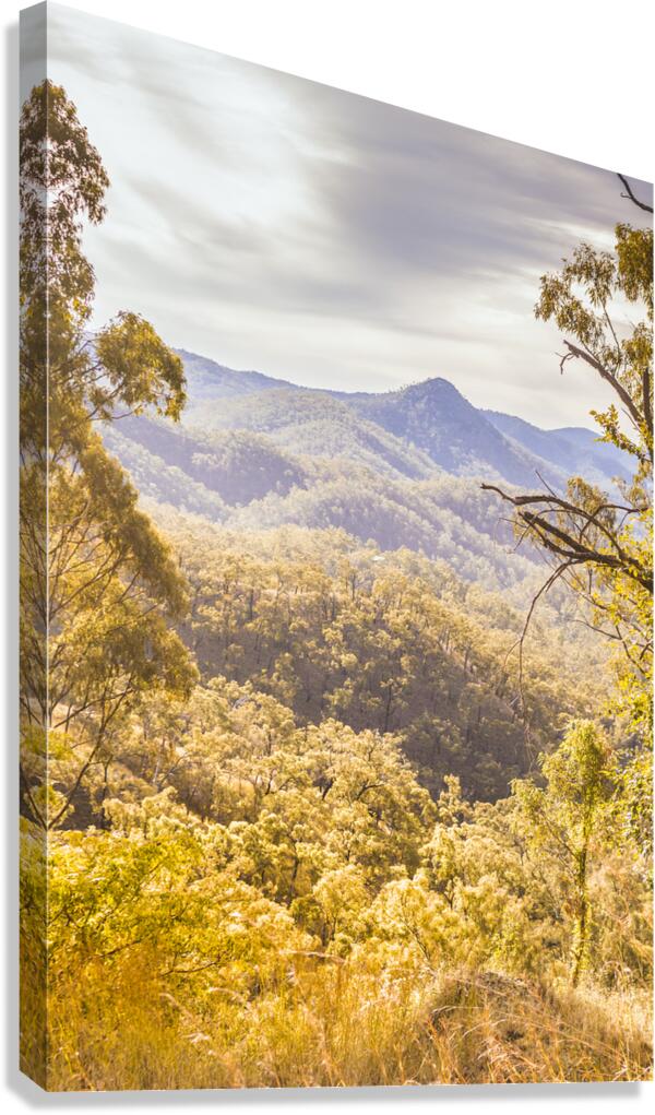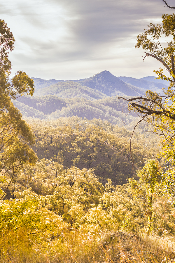 Serene summit lookout into vast countryside beauty with overcast skies and distant mountain ridges. Kalpowar Queensland Australia