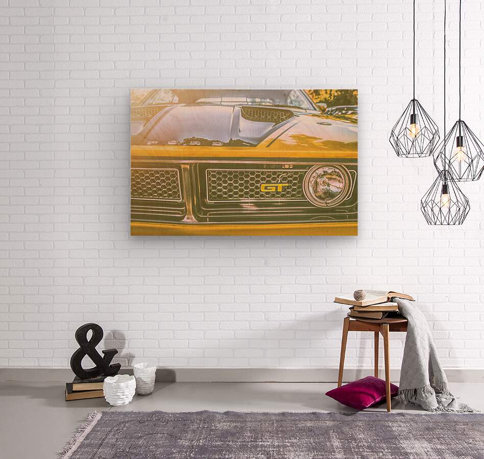 Classic Australian motoring photograph on the front of a yellow 1974 Ford Falcon XB GT Hardtop with strong nostalgic muscle styling