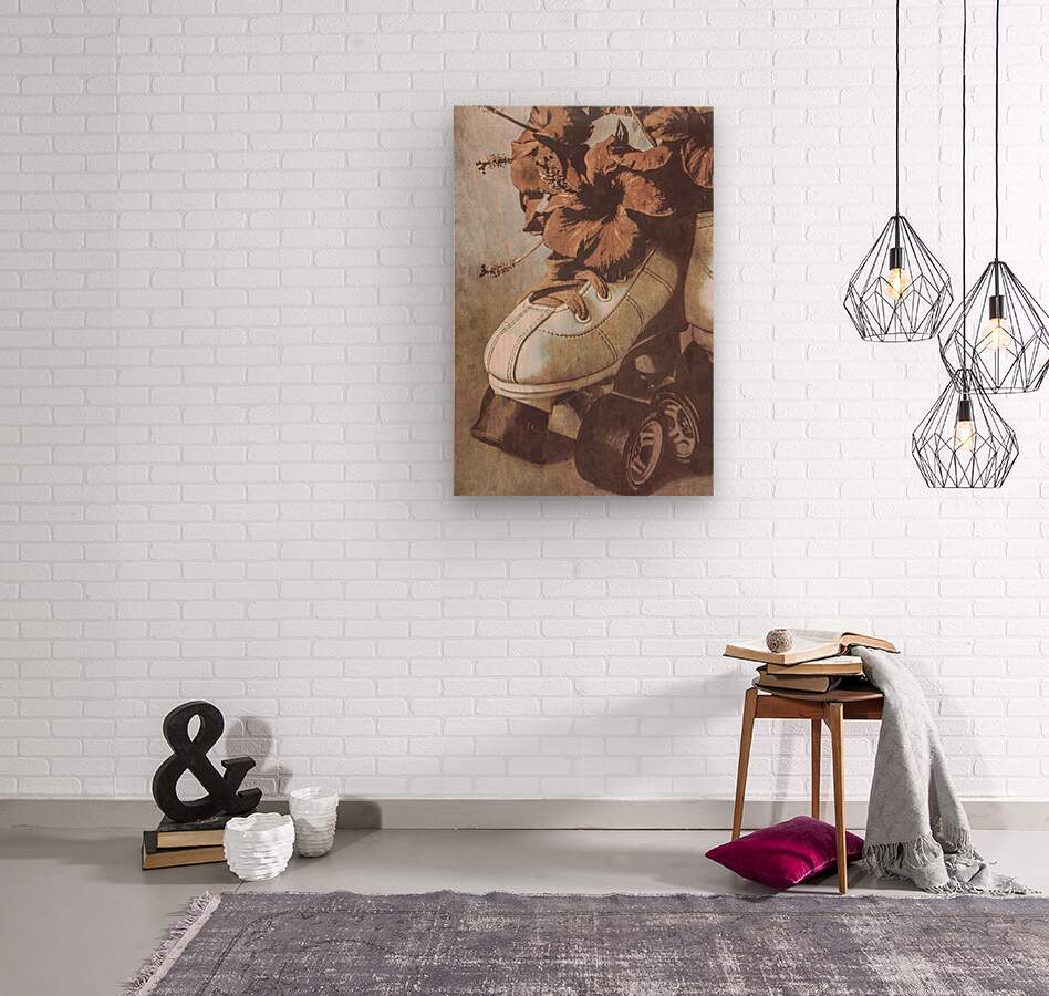 Shabby and weathered take in vintage romances with a classic roller skate boot filled with charm and ornate romantics from faded summer memories