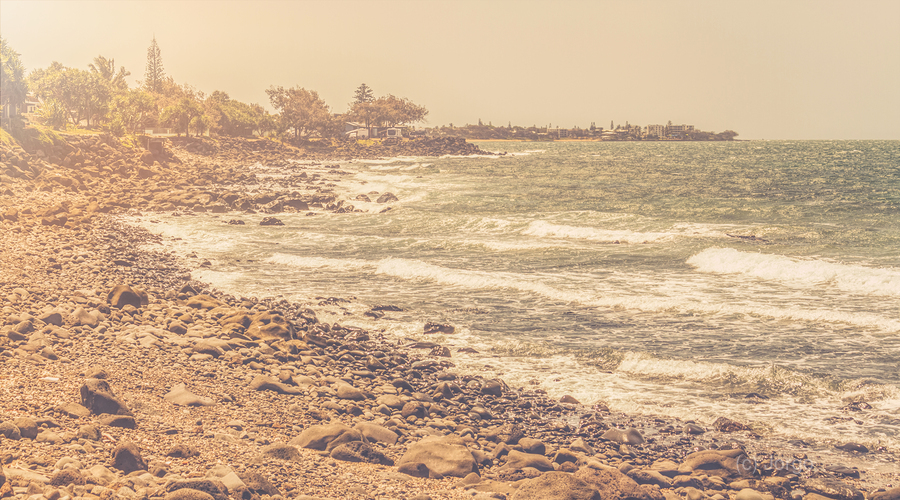 Vintage styled seascape of a wash of old brown tones over the shores of Bargara Queensland Australia