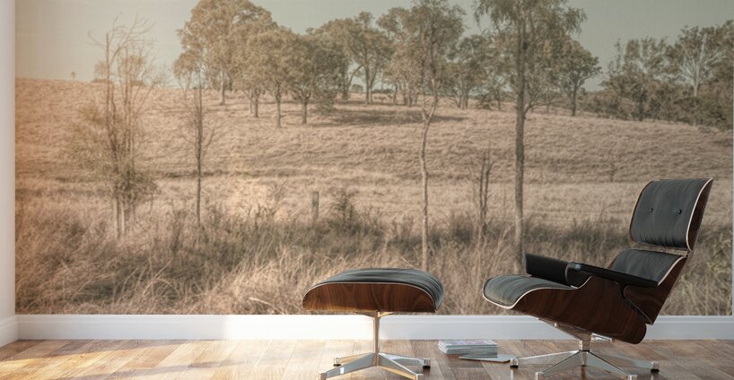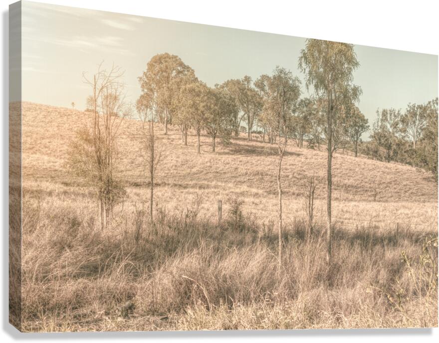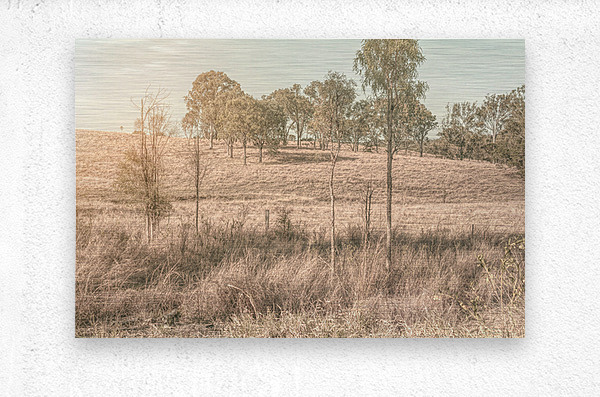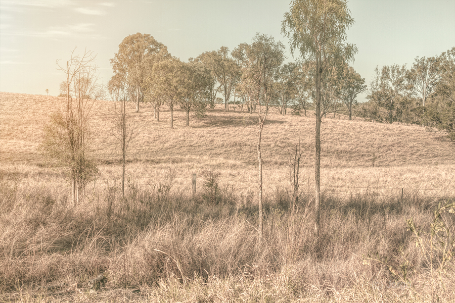 A muted pallet of countryside colors with the farmlands of New Moonta Queensland Australia glistening in late afternoon light
