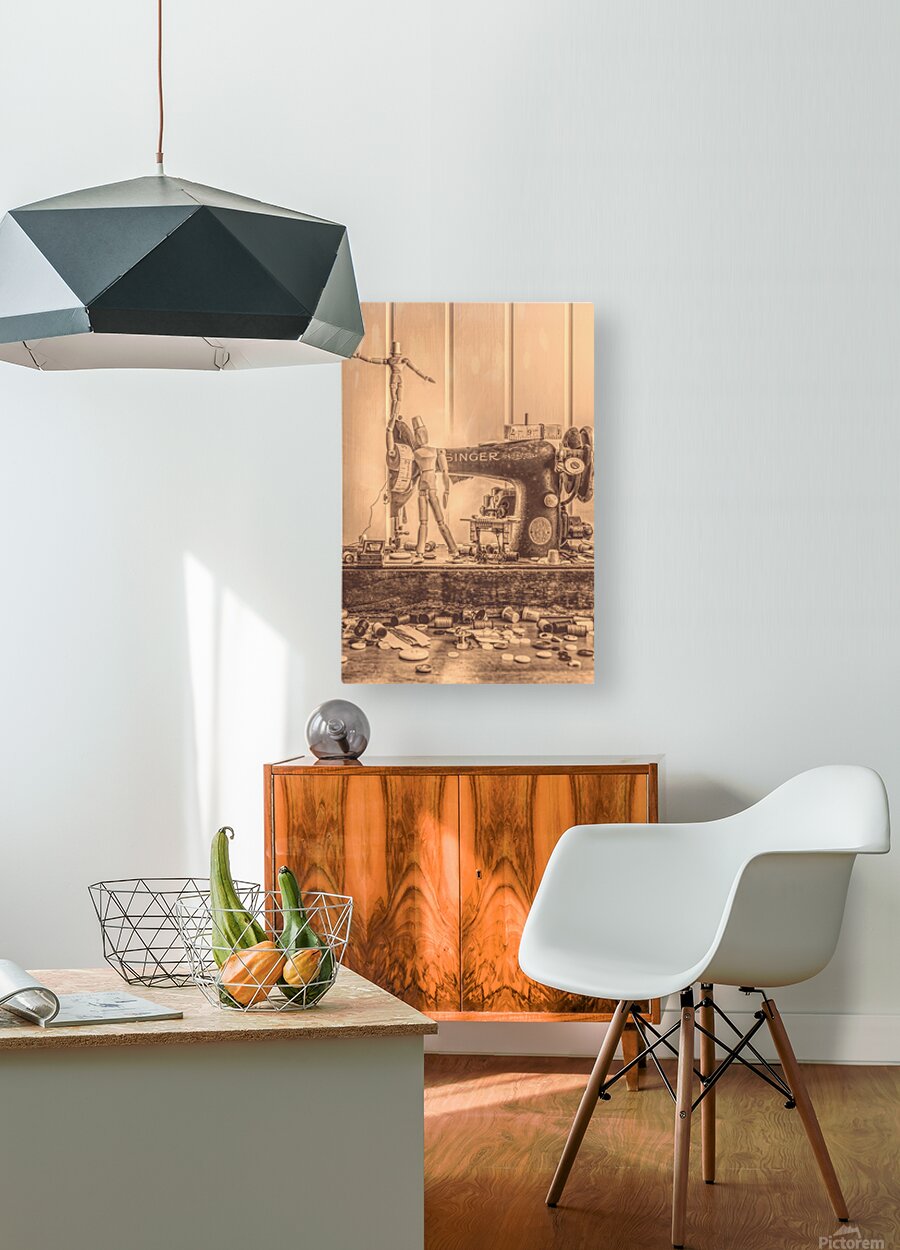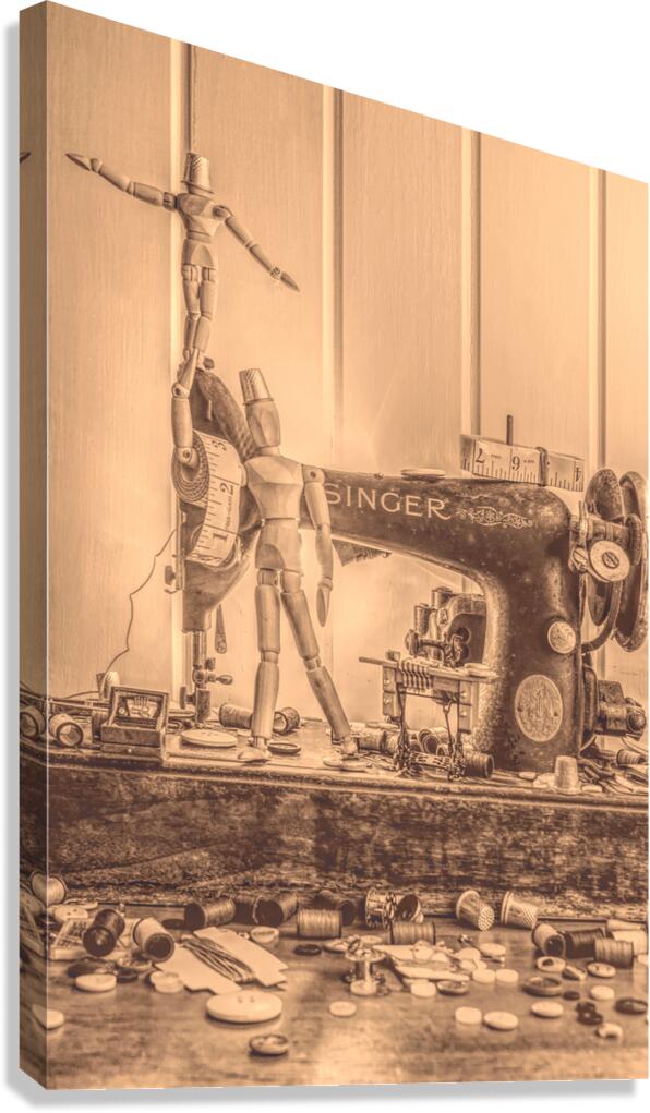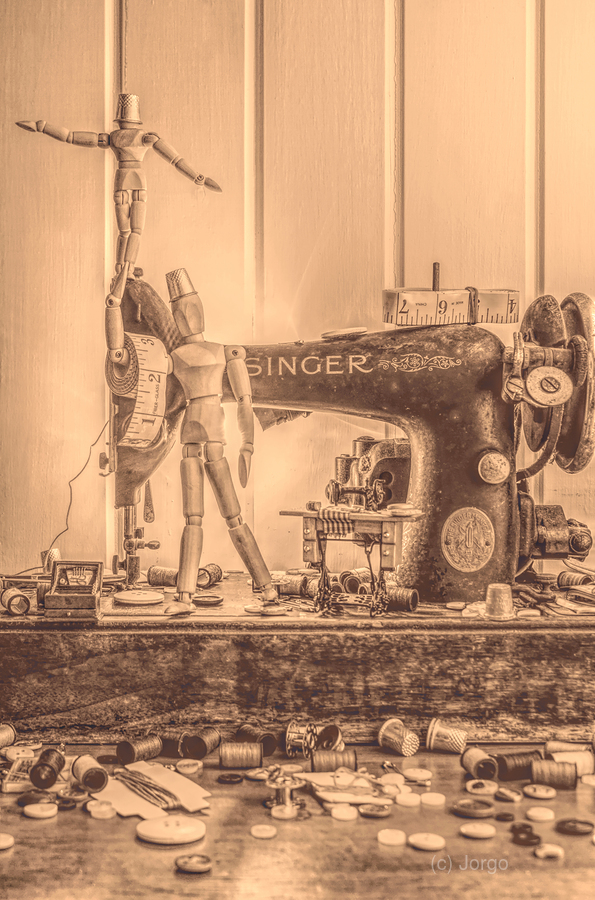 A vintage carnival creation in artistic alterations with mini manikins sewing entertainment with stage craft